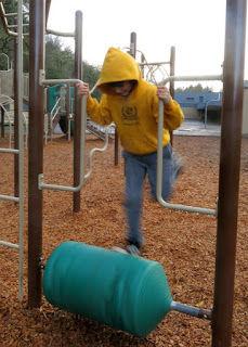 On n'a pas fait grand chose ce week-end, mais entre deux averses on est allé visiter une aire de jeu avec une roue à hamster pour enfants. Parfait pour se défouler les jours de pluie, je veux la même dans mon salon...
